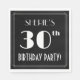 This elegant thirtieth birthday celebration/party paper napkin design features an editable name, a fancy art deco style inspired number “30th”, the message “BIRTHDAY PARTY!”, and a multi-line border. There is a black-colored background by default, but it can be customized to a different color, if desired. Paper napkins like these might be used when celebrating somebody’s 30th birthday. [~Z0000612]