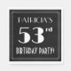 This elegant fifty-third birthday celebration/party paper napkin design features a customizable name, an intricate art deco style inspired number “53rd”, the message “BIRTHDAY PARTY!”, and a border pattern consisting of lines. It has a black-colored background by default, but it can be customized to a different color, if desired. Stylish birthday themed paper napkins like these might be used at a party for somebody who is celebrating their 53rd birthday. [~Z0000612]