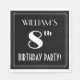This 1920s-1930s style inspired eighth birthday party paper napkin design features a customizable name, a fancy art deco style inspired number “8th”, the message “BIRTHDAY PARTY!”, and a border pattern consisting of lines. There is a black-colored background by default, but it can be customized to a different color, if desired. Elegant birthday themed paper napkins like these might be used at a birthday party celebrating somebody’s 8th birthday. [~Z0000612]