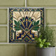 Art Deco Lotus Floral Navy Blue Gold Green Pattern Ceramic Tile