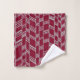 This towel set has an art deco design of vertical lines connected by diagonal lines in gray on a field of maroon.