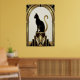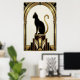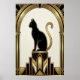 Elegance in simplicity. A slender black cat silhouette is perfectly centered within a massive white and gold archway. This high-contrast masterpiece focuses on clean lines and architectural framing, providing an ultra-sophisticated touch to minimalist luxury interiors.