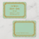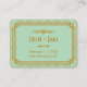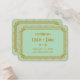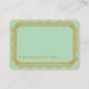 These place cards feature a mint and glittery gold color palette, a geometric frame, and other stylistic details all inspired by Art Deco and the roaring twenties. You can customize the sample text fields to your liking.