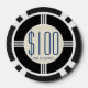 Elegant modern contemporary Monte Carlo style $100 poker chips with customizable monogram. Vintage art nouveau Gatsby style stripes for a Roaring 20's retro era poker night party. Add your own initials, or personalized text to create you own unique slick and classy playing chip. Perfect gift for the gambler man on your list. More unique masculine novelty gifts for men, poker players, casino gamblers, card sharks, executives available in store.