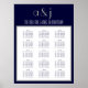 Gray, Navy Blue and White Art Deco Monogram Wedding Seating Chart for 150 people with 10 per table. Template Wedding Seating Plan Poster. Simple design with art deco fonts. Change initials in the monogram, the bride and groom names and add your table and guest names for the seating plan. Want a different color please contact luxuryweddinginvitations@gmail.com