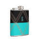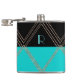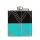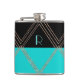 Stylish drinking flask done in a Art Deco style design, in black, turquoise and gold glittery triangles. A single turquoise letter monogram is ready to personalize. Lovely gift idea for her.