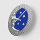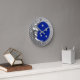 Clock in a classic Art Deco moon and stars design in brushed silver with an enamel look, cobalt blue background