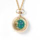 Classic Art Deco moon and stars design in brushed metallic gold, in enamel look teal / peacock green with a gold, textured background