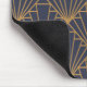 This mouse pad has art deco design of diamonds and triangles in gold on a field of blue.