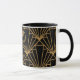 This mug has an Art Deco design of diamonds and triangles in gold on a field of black.