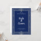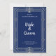 Elevate your wedding stationery with this sophisticated Art Deco invitation in rich navy blue and silver. Scallop shell medallions anchor the top and bottom while diamond fan accents line the sides, all framed by crisp silver geometric borders for a look that's polished and timeless.