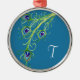 Art Deco Nouveau Style Peacock Feathers Swirl Metal Ornament