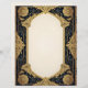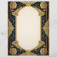 Gold flowers and leaves on a black and green background creates a beautiful and ornate frame for this stationery. The back is plain, in a complementery shade to the front. Classic and elegant, perfect for correspondence, flyers, and invitations.