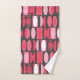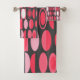 This towel set has an art deco design made of ovals and half ovals in black, white, and shades of pink.