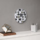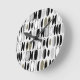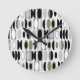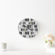 This clock has an art deco design made of ovals and half ovals in black, white, and shades of gray.