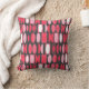 This throw pillow has an art deco design made of ovals and half ovals in white and shades of pink on a field of dark gray.