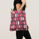 This tote bag has an art deco design made of ovals and half ovals in white and shades of pink on a field of dark gray.