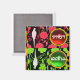 ART DECO PARROTS, RED GREEN FLOWERS DIRTY CLEAN MAGNET