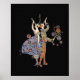 Art Deco Party poster adaptation. Retro antique dancers in costume from a vintage World War One poster dated 1917 from a Pennsylvania fund raiser. The party-goers are dressed in colorful vintage art deco fashion on a solid black background. Horns, noisemakers, balls and flappers waiting to dance adorn this giant poster celebrating good times. Vintage poster reproduction.