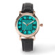 Art Deco, turquoise / peacock blue-green watch face with black numbers - digital graphics