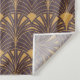 Art Deco pattern with fan-shaped motifs in orange and dark purple. The geometric design is repetitive, reflecting a vintage, elegant style.