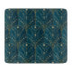 Art Deco pattern with gold geometric shapes on a deep teal background, featuring arch motifs and dotted accents, creating an elegant vintage feel.