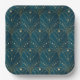Art Deco pattern with gold geometric shapes on a deep teal background, featuring arch motifs and dotted accents, creating an elegant vintage feel.