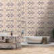 This is a modern geometric take on Art Deco with it's repeating pattern is ideal for a statement wall. Styled with trendy 2024 muted color combination of peach fuzz, pastel lilac, Italian plum. Anchored in a geometric pattern of cream, black, and gold colors. Use to refresh the inside of bookcase, cabinets, in picture frames for a touch of the old world and new world esthetics.
