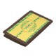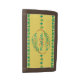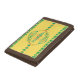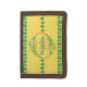 The colors are green, blue-green teal, orange, brown and red on a golden yellow-orange background. The font colors and background color can be changed through "Customize It." Choose your own wallet style.