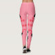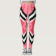 These leggings have an art deco quilt-inspired design of diamond shapes in black, white, and pink on a field of watermelon.