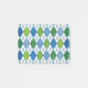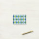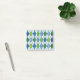 These Post-It notes have an art deco design of diamond shapes made from overlapping angles in black lines colored in shades of blue and green with diagonal black lines making the design look like argyle