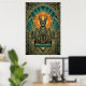 This royal art deco black cat sits enthroned with geometric collar and golden triple arches framing a dramatic orange sunburst halo. The teal marble details and opulent 1920s composition create unmatched luxury for living rooms, entryways and sophisticated spaces where cat lovers demand the finest statement wall art.