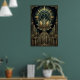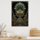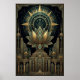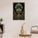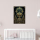 Complete your celestial sanctuary with the "Aura Celestial" Sacred Lotus Art Deco poster. This breathtaking design features a vibrant golden and teal lotus flower blossoming beneath a complex celestial compass starburst, all set against a rich obsidian black background.