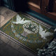 Welcome warmth and sophisticated artistry into your home with this enchanting door mat, featuring the serenely elegant doves design encapsulated within a sage green art deco frame by Walter Crane. Known for his integral contributions to the Arts and Crafts Movement, Crane seamlessly melded beauty with functionality, crafting designs that have transcended time. His work, oftentimes a harmonious blend of nature and artistry, serves as a delightful bridge between classical elegance and contemporary style, making his designs an impeccable choice for a modern home that seeks a touch of vintage allure. This door mat, with its delicate and subtly faded colors, doesn’t only offer a gentle caress to your feet, but also becomes a subtle, yet striking focal point, harmonizing and enlivening your décor space with a whisper of timeless charm. Perfect for those who appreciate art and wish to infuse their living space with an elegant, welcoming vibe that converses beautifully with both traditional and modern aesthetics.