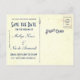 This simple art deco styled save the date postcard features a yellow and creme chevron pattern with a dark grey background. It simply features the date and city/state on the front of the card with a vintage postcard back.