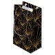 This gift bag has an Art Deco design of diamonds and triangles in gold on a field of black.