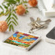 Large square premium metal keychain with an image of a colorful Art Deco stained glass pastoral scene of rolling hills and bright sunshine. See the entire Roaring 20s Keychain collection in the PARTY FAVORS section.