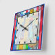 10.75” x 10.75” acrylic wall clock with an image of a stained glass artwork with Art Deco flair, reminiscent of certain 1920s works. Easy-to-read clock face on white transparent square with thin black border. See the entire This & That Clock collection in the HOME section.