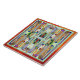 Square ceramic tile with an image of a stained glass artwork with Art Deco flair, reminiscent of certain 1920s works. See matching candy jar, espresso cup, flask, mug, paper plate, square trivet and coasters. See the entire This & That Tile collection in the HOME section.