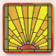 Set of 6 cork-back, high-gloss plastic coasters with an image of an Art Deco stained glass with golden rays of light emanating from a red-orange sun. See matching paper coaster and napkins. See the entire Roaring 20s Coaster collection in the FOOD/BEV | Coasters section.