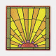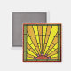 Square magnet with an Art Deco stained glass image of a yellow-orange sun lighting up the day with yellow and orange rays of light. See the entire Roaring 20s Magnet collection in the PARTY FAVORS section.