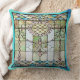 20” x 20” throw pillow with an image of beautifully intricate Art Deco stained glass in pink, blue and green on aqua stained glass. Aqua stained glass back. See the entire Roaring 20s Pillow collection in the DECOR | Pillows section.
