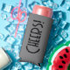 Decorate your space with this solid black typography design lettering featuring CHEERS in all capital letters on a solid gray background. Choose your style of coaster shape to further personalize your beverages!