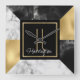 Art Deco Style Marble and Gold Monogrammed Square Wall Clock