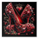 Art Deco Style Red Stiletto High Heels with Diamond Shaped Hearts