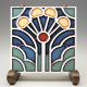 Channel the bold sophistication of the Art Deco era with this striking ceramic tile. The design features a perfectly symmetrical, stylized tree motif with a sunburst or fan-like spread. Deep navy blue and dusty sage green provide a cool, elegant base, beautifully contrasted by warm, amber-yellow blossoms and a central, eye-catching terracotta red circle. Each colored section is crisply defined by raised, off-white lines with a subtle bronze edge, reminiscent of classic cloisonné or stained-glass artistry. This tile is a testament to geometric precision and organic inspiration, making it a perfect accent for a historic home or a touch of vintage flair in a modern space.