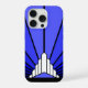 An iconic pattern of the sun rising from behind a stylized art deco shaped building. A simple yet elegant design, true to the era.
