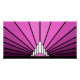 An iconic pattern of the sun rising from behind a stylized art deco shaped building. A simple yet elegant design, true to the era.
