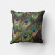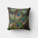 art deco teal green turquoise peacock feather outdoor pillow