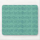 This mouse pad has an Art Deco design made from a right angle with a maze set inside in teal on a field of sea green.